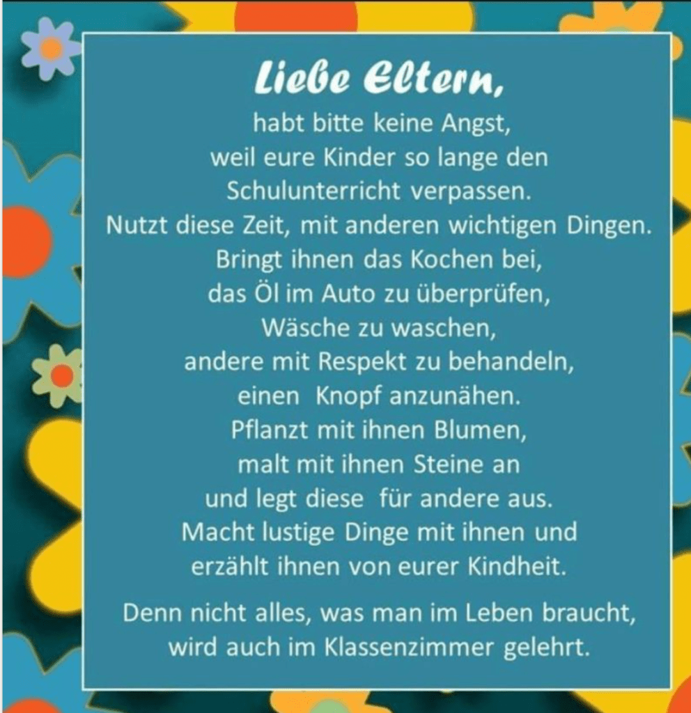 Eine An – Regung noch zum Schluss: Versuchen wir doch einmal einen Tag unsere sogenannten „smarten Handies“ , die per se stock dumm, aber deren Erzeuger und unsere Netzbetreiber jene sind, die smart sind, einmal nur in dem Sinne zu verwenden, für den Mobiltelefone eigentlich gedacht sind: zum Telefonieren und maximal zum SMSsen. Und dann, am Abend des selben oder am Morgen des nächsten Tages schreibt euch auf, was ihr a) glaubt dadurch versäumt zu haben und b) möglicherweise dadurch „gewonnen“ haben könntet, und wenn es auch „nur“ Zeit ist. Zeit für Gespräche, Zeit für Umarmungen, Zeit zuzuhören, Zeit für die Liebsten, für die Kinder, für die Eltern und Grosseltern, Zeit ein Buch zu lesen, Zeit zu schweigen und in sich rein zu horchen, Zeit zu spielen, Zeit zu musizieren, Zeit zu radeln, Zeit zu laufen, Zeit zu träumen…..